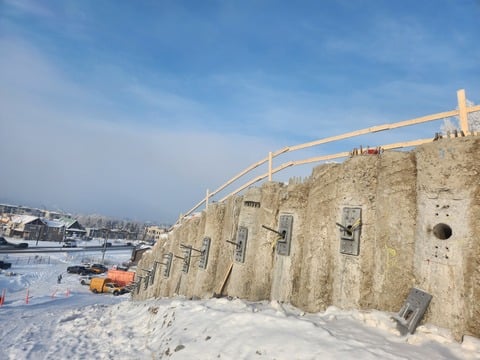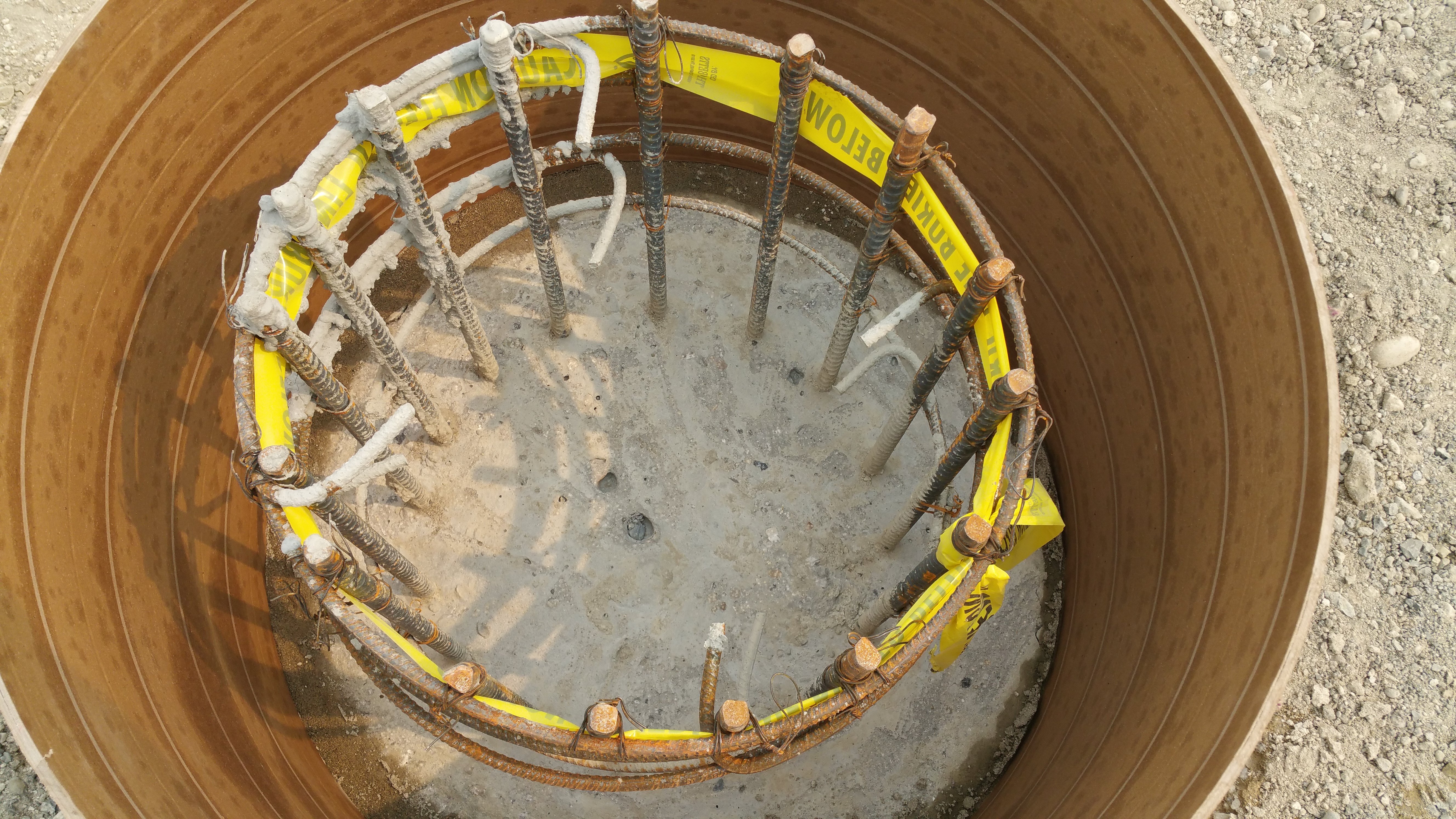 - After the casing has been designed to the proper depth, the reinforcing steel (threaded bars) is inserted. The High-strength cement grout is then pumped into the casing, enhancing the mass stability.